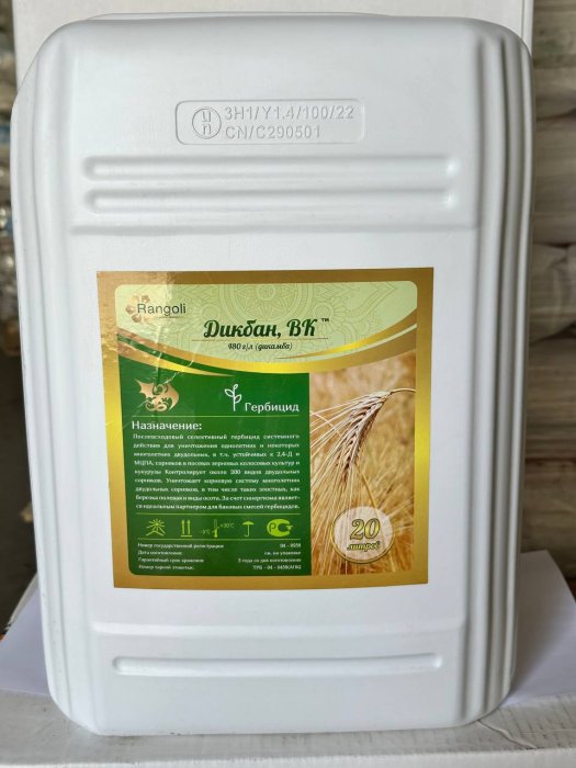 Дикбан, 48% в.р.к. это системный послевсходовый гербицид. Действующее вещество поглощается как листьями так и корневой системой сорняков. Прекращается синтез хлорофилла и влияет на деление клеток в меристеме сорняков, что приводит к их быстрому отмиранию.Спектр действия