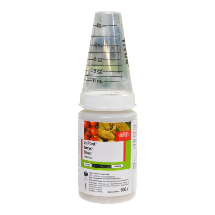Эффективность не зависит от содержания влаги в почве, поскольку Титус проникает в растения главным образом через листья. Через несколько часов после проникновения восприимчивые сорняки прекращают рост и больше не конкурируют с культурой в потреблении влаги и минеральных веществ.