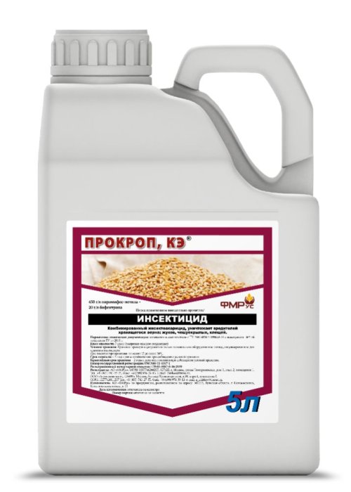 15 мл/т | Зерно продовольственное, семенное, фуражное и семена бобовых и масличных культур | То же | Опрыскивание при перемешивании зерна с использованием специальных распылителей инсектицидов. Расход рабочей жидкости — до 500 мл на 1 т зерна и семян. Срок безопасного выхода людей — 1 сутки. Использование зерна и семян на продовольственные и фуражные цели при содержании остатков препарата не выше МДУ. |